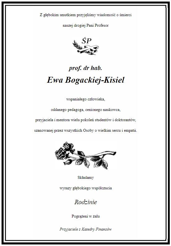 Z wielkim smutkiem przyjęliśmy wiadomość, że 18 marca 2021 r. odeszła na zawsze ś.p. Pani Profesor Ewa Bogacka – Kisiel.